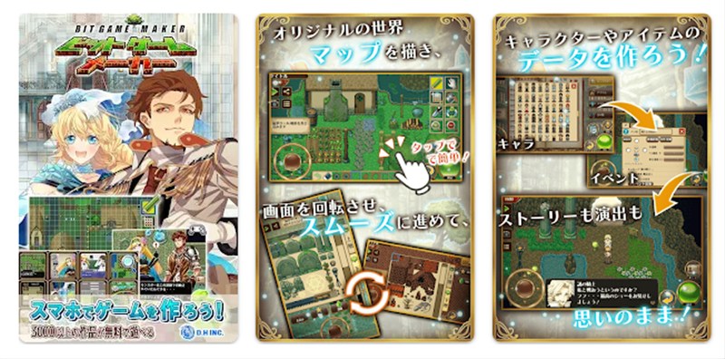 すべてがタップ操作で完結します。ストーリーはどうする?仲間キャラクターはどんな性格にする?ラスボスの正体は?すべてがあなたの想像力次第です。
